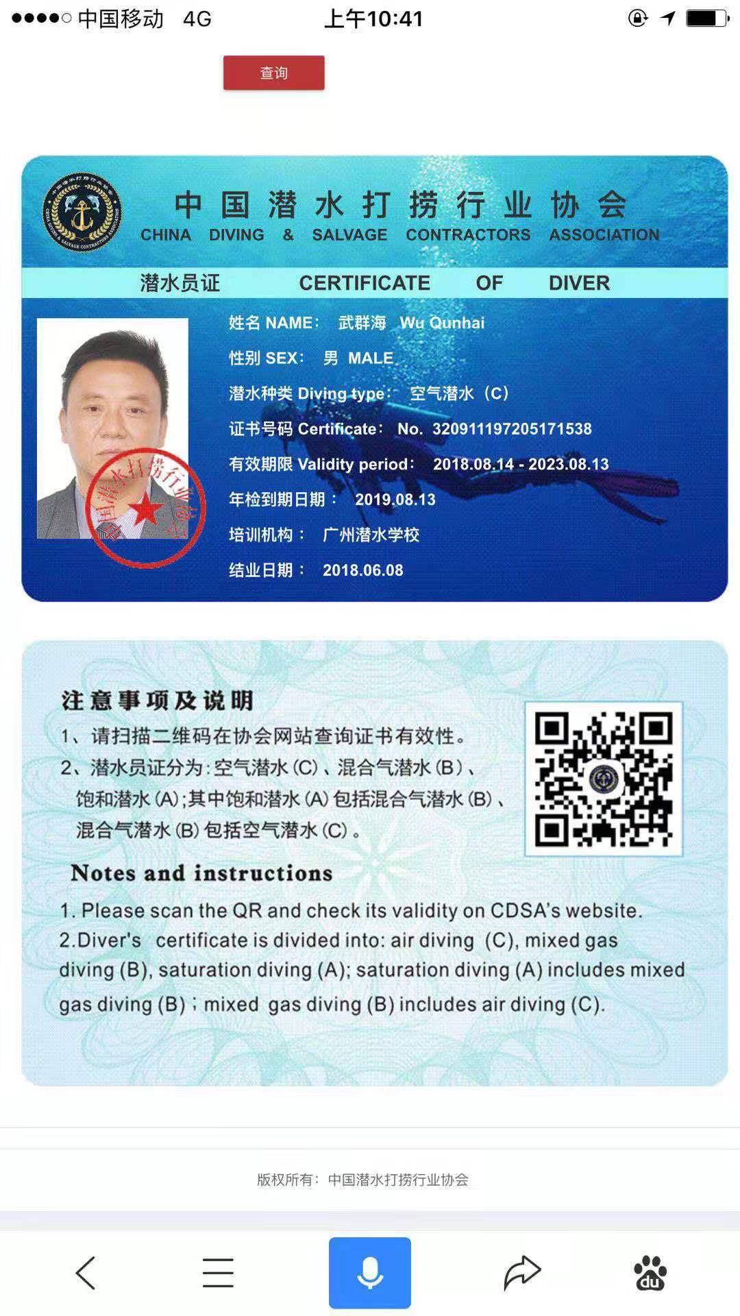 公司致力于江、河、湖、海、水庫等水下工程作業(yè),具有良好的企業(yè)形象和強勁的技術(shù)優(yōu)勢,多次出色完成各類水下工程任務如:水下打撈,潛水作業(yè),水下切割,水下拆除,水下焊接,水下安裝,沉井施工等......,與中交二航局、三航局,交通部大橋局,華能電廠、中鐵十七局等單位是長期合作伙伴,憑借過硬的技術(shù),優(yōu)質(zhì)、高效、安全的業(yè)績贏得了廣大客戶的好評。
